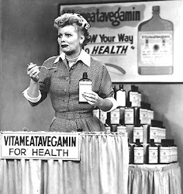 pushing Vitameatavegamin with disastrous results.